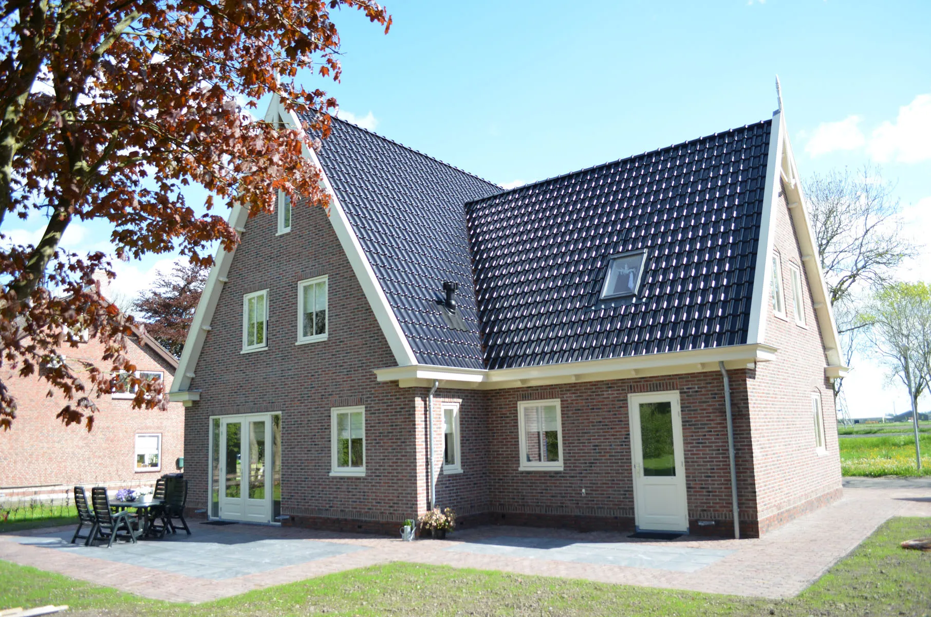 Deze statige bungalow combineert traditionele vormgeving met een warme, ambachtelijke uitstraling. De markante, hoge topgevels geven de woning een herkenbaar en krachtig silhouet, terwijl de zachtrode gevelsteen zorgt voor een vriendelijk en tijdloos karakter. De lichtgekleurde kozijnen, boeidelen en geveltekeningen versterken het klassieke beeld en zorgen voor verfijnde contrasten.